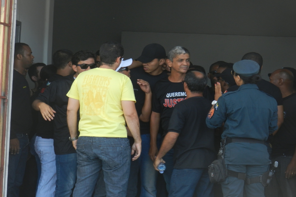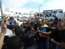 primeiro a ser abraçado pelos colegas foi Sidney Guarani, presidente do Sindicato dos Agentes de Segurança e de Medidas Socioeducativas, que está no rol dos réus que foram presos no dia 9 deste mês por determinação do juízo da 6ª Vara Criminal.
